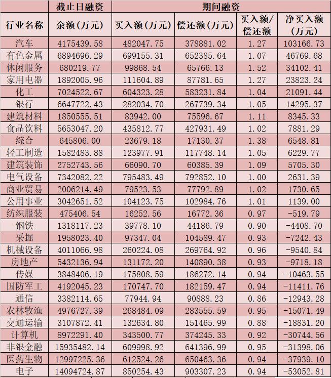 六、截至2月2日申萬級一級行業(yè)兩融交易情況