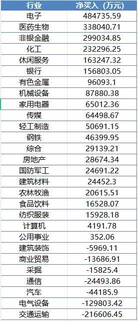 本周北上資金行業(yè)買(mǎi)賣(mài)情況