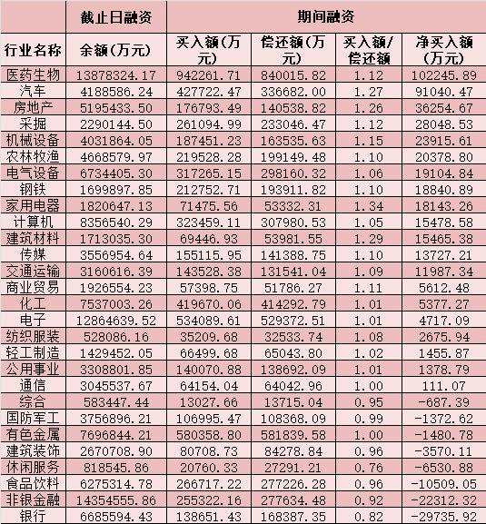 六、截至5月12日申萬(wàn)級(jí)一級(jí)行業(yè)兩融交易情況