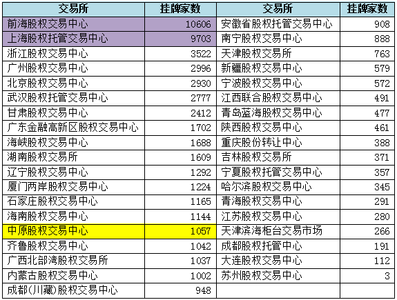 表1:區(qū)域股權(quán)交易中心掛牌企業(yè)數(shù)情況(按交易所分布4.27)