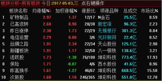 從盤(pán)面上看,新疆、碳纖維、大飛機(jī)、量子通信、次新股等板塊漲幅居前;雄安新區(qū)、特高壓、在線旅游、職業(yè)教育、污水處理等板塊跌幅居前。具體來(lái)看,今日次新股接力雄安新區(qū)概念股的強(qiáng)勢(shì),自底部逐漸崛起,該板塊自收盤(pán),次新股共有超29只個(gè)股封住漲停。實(shí)際上,次新股疊加高送轉(zhuǎn)概念,該板塊探底回升,出現(xiàn)的超跌反彈行情存在一定的延續(xù)性值得期待。就此形成雄安新區(qū)與次新股高送轉(zhuǎn)之間形成一定的蹺蹺板效應(yīng)或許會(huì)在后期持續(xù)上演。另外,一帶一路具有資金流入跡象較為明顯,時(shí)間驅(qū)動(dòng)的大飛機(jī)概念、量子通信,漲價(jià)題材等也有不俗表現(xiàn),后市也可給予重點(diǎn)關(guān)注。但總體上來(lái)看,市場(chǎng)之中的賺錢(qián)氛圍正在減弱,短線缺少良好的投資機(jī)會(huì)。