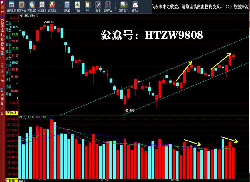 摘要: 滬指最近漲勢(shì)較猛,連漲三天輕易的就沖過(guò)了上周四長(zhǎng)上影陰線的高點(diǎn),但也不要過(guò)于激動(dòng),從成交量上來(lái)看仍屬于縮量上漲,你懂的。從前期的走勢(shì)來(lái)看,都是上漲四天出現(xiàn)回調(diào),但上漲中都是縮量上漲,進(jìn)二退一,今天已經(jīng)