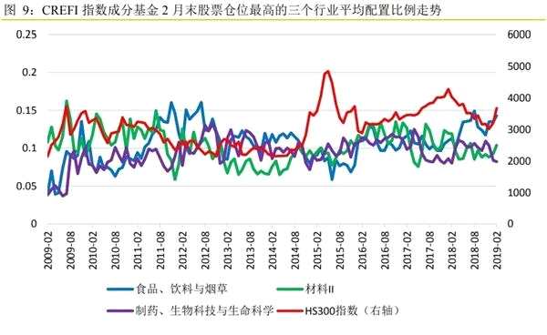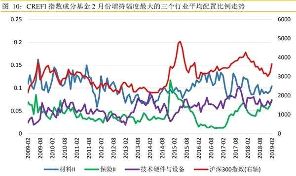 滬深300指數(shù)成分股最受青睞,平均配置比例為52.18%,較1月末上升3.12%。