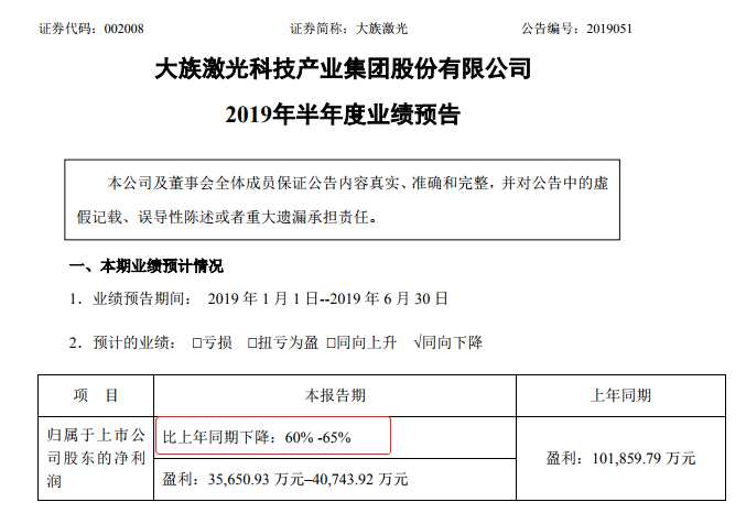 除了東阿阿膠,白馬股陣營(yíng)中提早爆雷的還有大族激光。