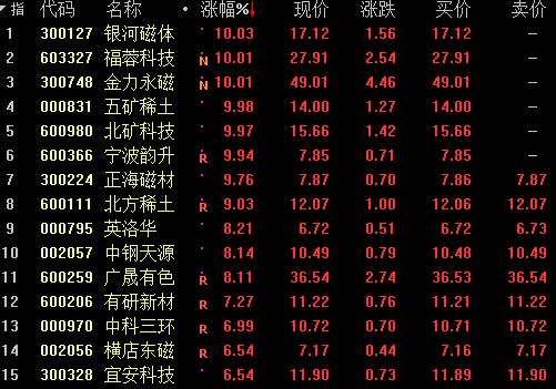 稀土永磁板塊漲幅榜
