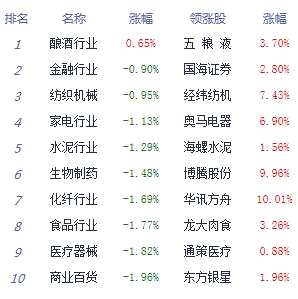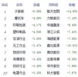 A股市場板塊及個股漲跌幅排行
