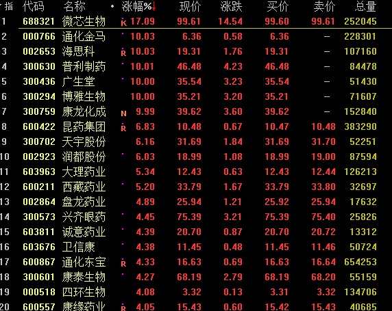 醫(yī)藥板塊14日盤中震蕩上揚(yáng),通化金馬、【海思科(002653)、股吧】、普利制藥、廣生堂、博雅生物、康龍化成等漲停,昆藥集團(tuán)、天宇股份等漲逾6%。