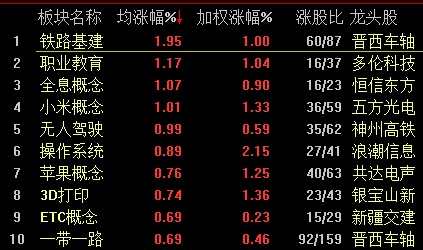 概念板塊漲跌互現(xiàn),鐵路基建、企業(yè)教育、全息概念、無人駕駛、小米概念、操作系統(tǒng)等板塊漲幅靠前;含GDR、豬肉、氟概念、透明工廠、人造肉、食品安全等板塊跌幅靠前?! ?/p>