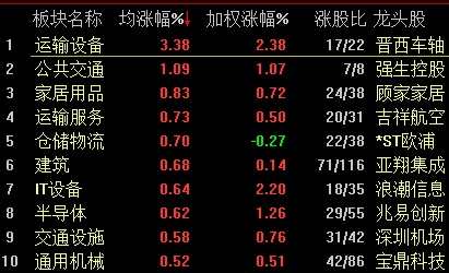 盤面上,行業(yè)板塊漲跌各半,運(yùn)輸設(shè)備、公共交通、家居用品、倉儲物流、建筑等板塊漲幅居前;航空、通信設(shè)備、造紙、證券、旅游、煤炭等板塊跌幅居前?! ?/p>