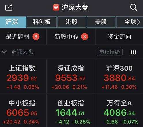截至收盤,滬指報(bào)2939.62點(diǎn),漲幅0.05%,成交量1456.86億元;深成指報(bào)9553.57點(diǎn),漲幅0.21%,成交量2243.98億元;創(chuàng)業(yè)板指報(bào)1644.51點(diǎn),跌幅0.25%,成交量841.5億元?! ?/p>