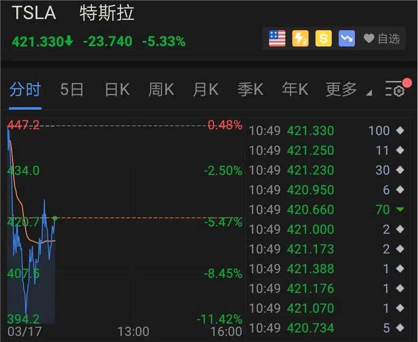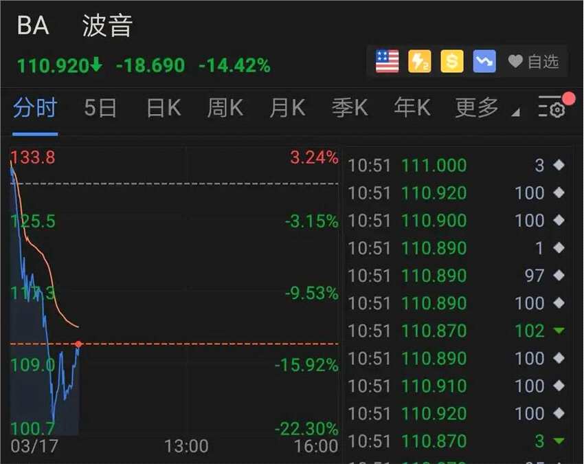 特斯拉一度跌逾11%,波音一度跌近20%,創(chuàng)2016年以來新低。