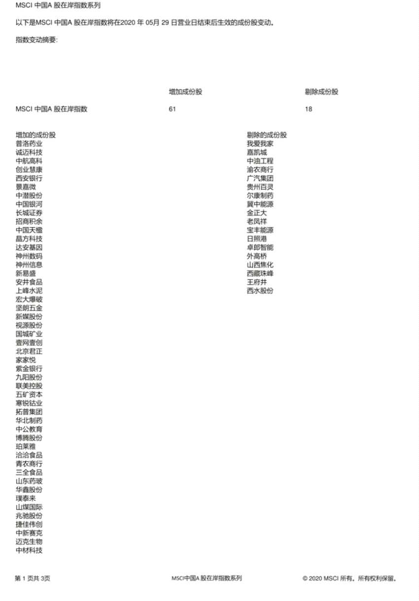 以下是MSCI公布的MSCI中國(guó)A股在岸指數(shù)增減個(gè)股名單: