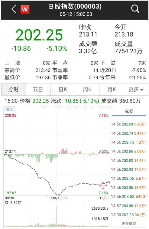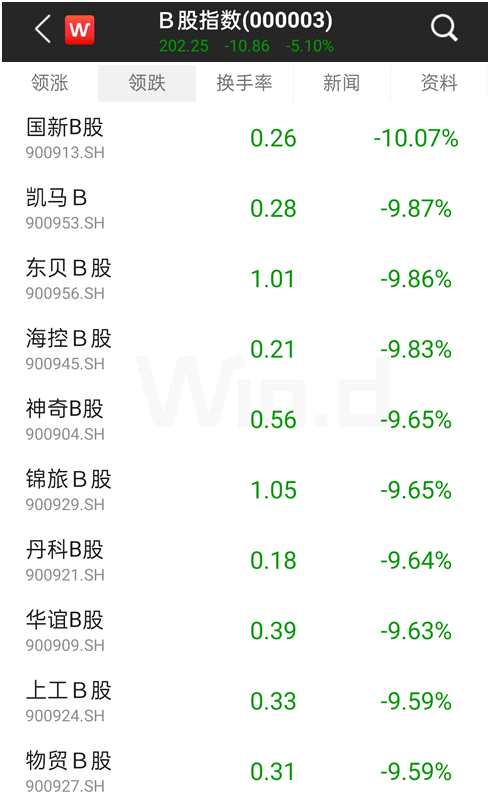 周二(5月12日),快被市場(chǎng)遺忘的B股再次進(jìn)入投資者的視野,而這回卻是因?yàn)榇蟮狟股指數(shù)收盤下跌5.10%,深證B股指數(shù)收盤跌幅也達(dá)到2.53%。