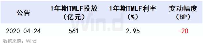 4月24日,央行縮量續(xù)做561億元定向中期借貸便利(TMLF),中標(biāo)利率2.95%,上次3.15%。