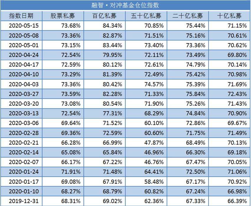 除北向資金不斷加倉外,私募方面也同樣在加倉。私募排排網(wǎng)組合大師數(shù)據(jù)顯示,截至5月15日,股票私募整體倉位指數(shù)為73.68%,創(chuàng)近一年來的新高,環(huán)比加倉了0.32個(gè)百分點(diǎn),51.58%的股票私募倉位在八成以上。分規(guī)模來看,百億私募倉位最高、加倉幅度最大,最新百億股票私募整體倉位指數(shù)為84.34%,創(chuàng)近一年的新高,環(huán)比加倉1.47個(gè)百分點(diǎn),其中75.44%的百億股票私募倉位在八成以上。