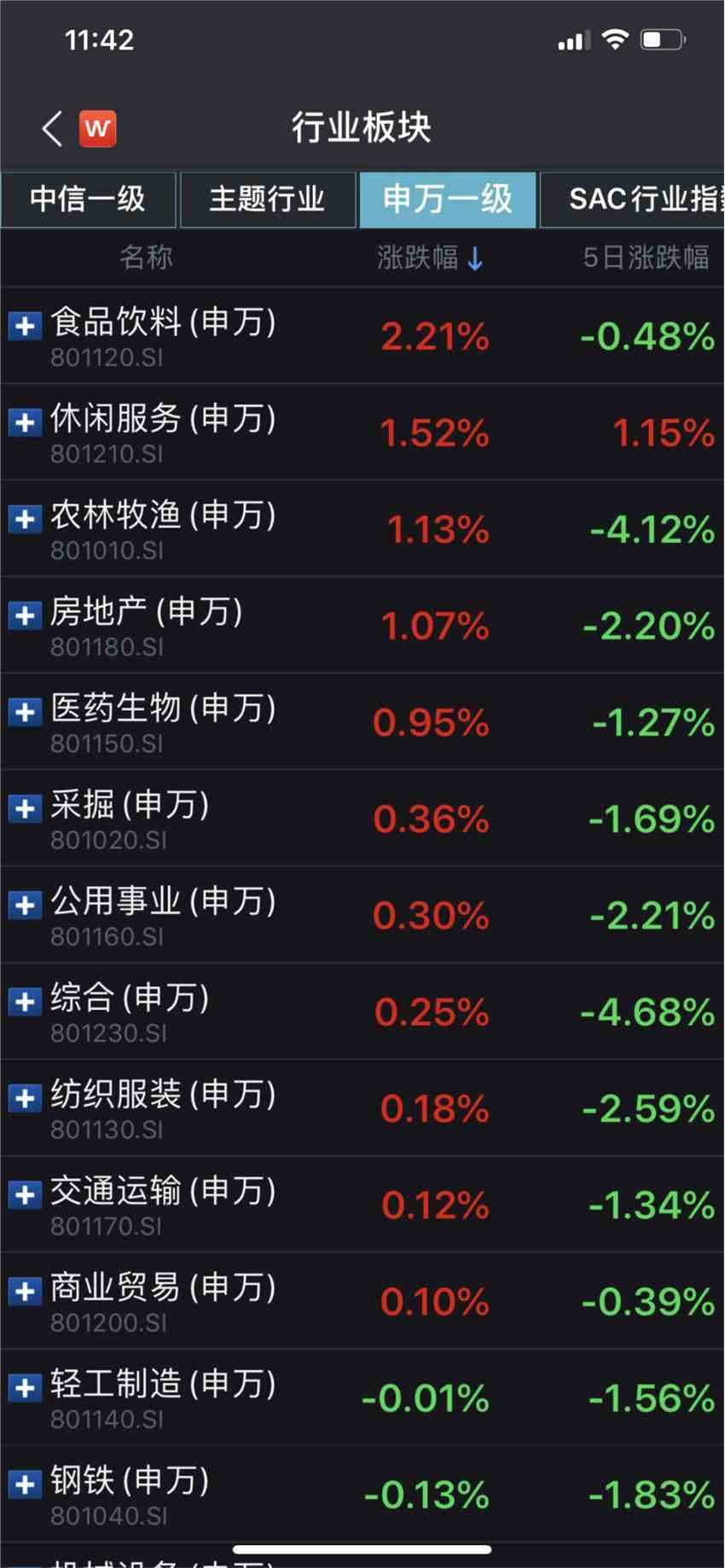 從盤面上來看,申萬一級(jí)28個(gè)行業(yè)中有11個(gè)行業(yè)上漲,食品飲料、休閑服務(wù)、農(nóng)林牧漁行業(yè)漲幅居前,分別上漲2.21%、1.52%、1.13%;科技板塊調(diào)整,通信、電子、計(jì)算機(jī)行業(yè)跌幅居前,分別下跌2.25%、2.11%、1.40%。