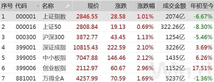 5月26日,滬深兩市高開高走,截至收盤,上證指數(shù)漲1.01%報(bào)收于2846.55點(diǎn);深成指漲2.10%報(bào)收于10815.43點(diǎn);創(chuàng)業(yè)板指漲2.96%報(bào)收于2112.97點(diǎn),萬得全A總成交5237億元,主力凈流入額223.73億元。