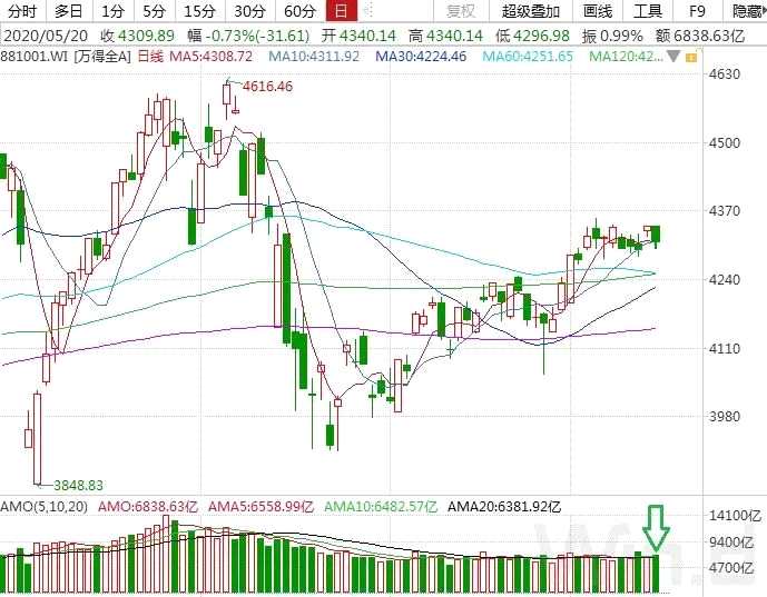 5月26日,市場(chǎng)延續(xù)上漲行情,成交量較前一交易日有所放大。萬得全A成交金額近5237億元,較前一交易日放大約386億元。
