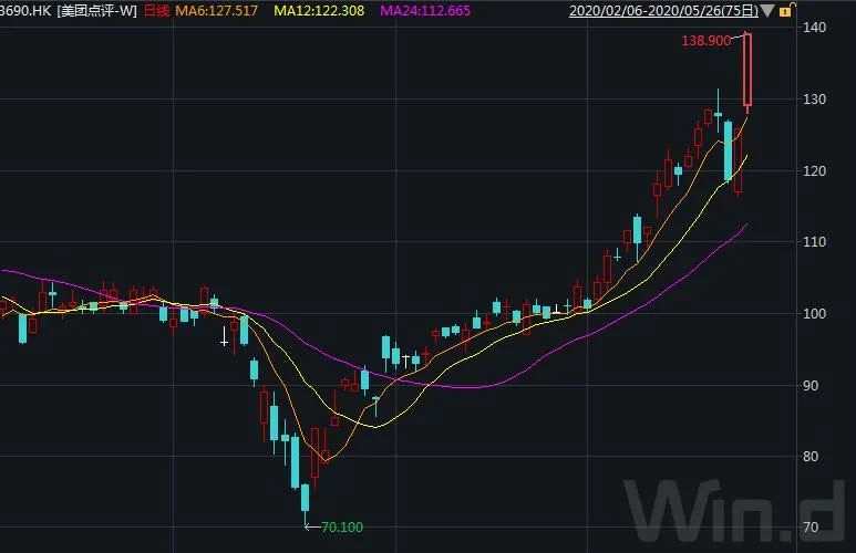 港股美團(tuán)點(diǎn)評(píng)一季報(bào)業(yè)績超預(yù)期,5月26日大漲10.41%,以全天最高價(jià)138.9港元收盤,創(chuàng)上市新高,市值達(dá)8093億港元,位居港股市場(chǎng)第11位港股美團(tuán)點(diǎn)評(píng)一季報(bào)業(yè)績超預(yù)期,5月26日大漲10.41%,以全天最高價(jià)138.9港元收盤,創(chuàng)上市新高,市值達(dá)8093億港元,位居港股市場(chǎng)第11位。