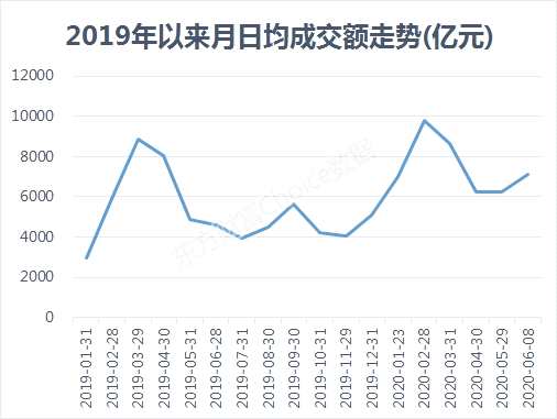 雖說6月1日大漲后,行情走的比較糾結(jié),但一個好的跡象就是近來成交額有了明顯的回升。數(shù)據(jù)顯示,本月前6個交易日的日均成交額為7127億元,較上月6220億元的日均成交額增加近1000億元。