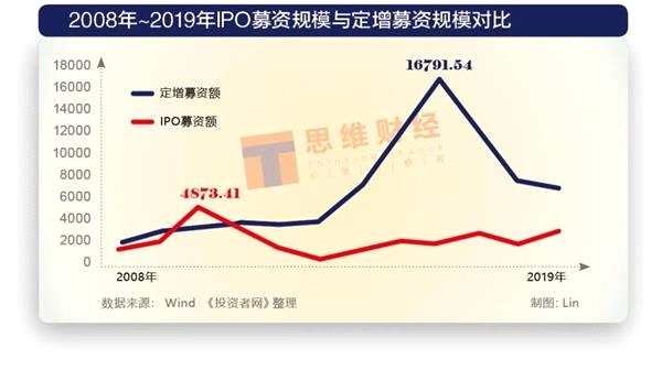 在2016年,這點格外突出。這一年,A股定增市場尤其火爆,全年完成定增發(fā)行規(guī)模1.7萬億元,而當(dāng)年227家IPO企業(yè)首發(fā)募資總額才1500億元,二者相差10倍之多。