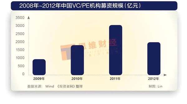 IPO造富神話激勵了中國的投資機構(gòu)和他們背后的LP,于是大家一擁而上,很快讓這個行業(yè)泛起了濃厚的泡沫。有數(shù)據(jù)統(tǒng)計,2010年中國VC/PE機構(gòu)募資規(guī)模達(dá)到創(chuàng)紀(jì)錄的1768億,相較于2009年實現(xiàn)翻番。