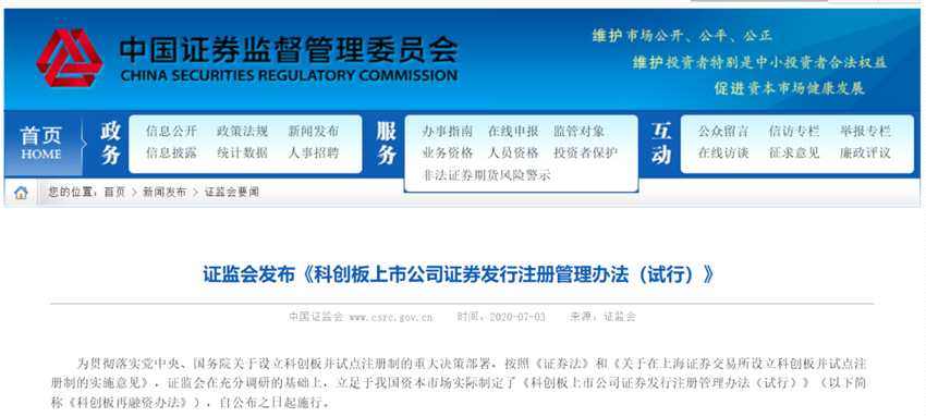 7月3日,證監(jiān)會發(fā)布《科創(chuàng)板上市公司證券發(fā)行注冊管理辦法(試行)》。同日,上交所正式發(fā)布了科創(chuàng)板再融資相關規(guī)則。