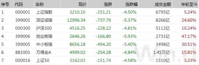 周四(7月16日)是本輪小牛市開啟以來回調(diào)力度最大的一次。在周三失守3400后,上證綜指周四再次破位3300,收盤險(xiǎn)守3200點(diǎn),截止收盤上證指數(shù)跌4.50%報(bào)收于3210.10點(diǎn);深證成指跌5.37%報(bào)收于12996.34點(diǎn);創(chuàng)業(yè)板指跌5.93%報(bào)收于2646.26點(diǎn),萬得全A總成交1.45萬億元,連續(xù)11天成交破萬億。