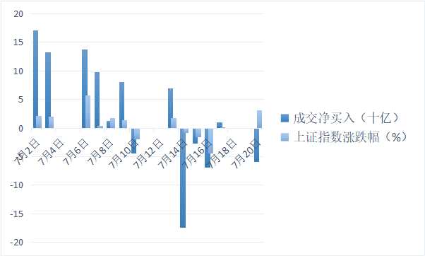 圖1 7月上中旬北上資金流向與上證指數(shù)漲跌幅