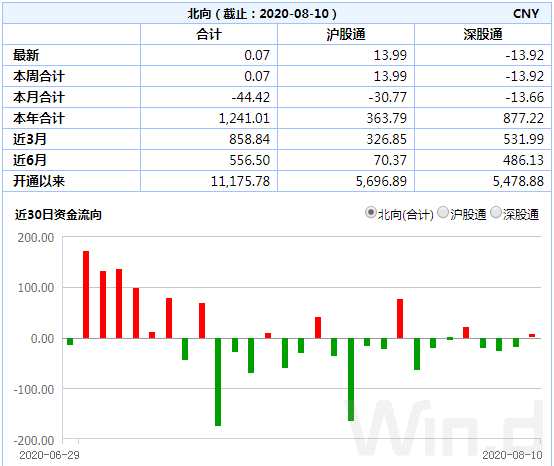 北向資金出現(xiàn)凈流入,Wind數(shù)據(jù)顯示,8月10日,北向資金凈流入0.07億,盡管金額不大,但逆轉了連續(xù)3日凈流出的局面。若短期凈流入得到持續(xù),北向資金買買買的模式或再將開啟。