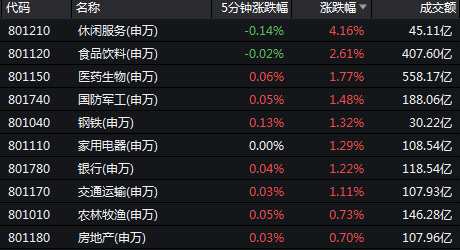 8月28日上午,申萬一級行業(yè)中,休閑服務(wù)板塊領(lǐng)漲兩市,半日上漲超過4%,食品飲料板塊緊隨其后。其中,酒鬼酒漲停,洋河股份、瀘州老窖、水井坊等半日漲幅超過5%。另外,醫(yī)藥生物、國防軍工、家用電器等板塊也漲幅居前。