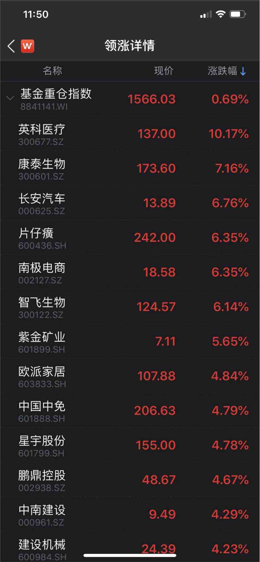 在個(gè)股多數(shù)下跌的情況下,今天主要上漲的是什么類型的股票?答案是機(jī)構(gòu)重倉股。在連日下跌后,今日機(jī)構(gòu)重倉股出現(xiàn)回暖。Wind數(shù)據(jù)顯示,截至午間收盤,Wind基金重倉指數(shù)上漲0.69%,表現(xiàn)優(yōu)于大盤。板塊內(nèi)超6成個(gè)股上漲,昨日下跌16.57%的康泰生物今日上漲7.16%,五糧液、貴州茅臺、海天味業(yè)等機(jī)構(gòu)重倉股今日全線上漲。