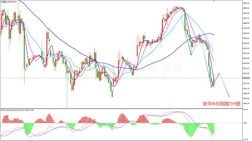 新華A50指數(shù)昨日開盤后一路下跌,在跌至15282附近受到支撐,隨后維持窄幅震蕩走勢(shì),今日早間開盤后延續(xù)上一日下跌走勢(shì),最低跌至15118附近。從1H周期走勢(shì)結(jié)構(gòu)看,新華A50指數(shù)自15530附近下跌,走出三波下跌結(jié)構(gòu),對(duì)比兩段下跌走勢(shì),第二段下跌力度要強(qiáng)于第一段下跌走勢(shì),表明空頭力量強(qiáng)勁,結(jié)合均線指標(biāo)來看,短期均線已下穿長期均線,后市大概率延續(xù)下跌走勢(shì),日內(nèi)可關(guān)注空單機(jī)會(huì)。