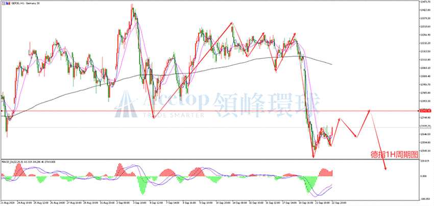 德指從以上1H周期圖看,行情已顯現(xiàn)破位下跌形態(tài),當前價格變化再次進入震蕩區(qū)間,與上一次震蕩區(qū)間對比不難發(fā)現(xiàn)本輪震蕩才剛開始,并且反彈也未達壓力位,所以此次震蕩應該還會持續(xù)一段時間;另外,均線指標的長期均線已偏離價格較遠,技術(shù)面上存在修復的需求。操作方面中線應該是高空,日內(nèi)短線也可以考慮低多。