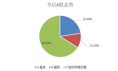 對于節(jié)后市場的預(yù)測,相關(guān)問卷結(jié)果顯示,有22.64%的私募預(yù)期節(jié)后A股市場整體有望上漲,僅有約一成即11.32%的私募看跌節(jié)后市場表現(xiàn)。不過值得注意的是,更多比重的私募則普遍預(yù)期節(jié)后市場還將繼續(xù)窄幅休整。