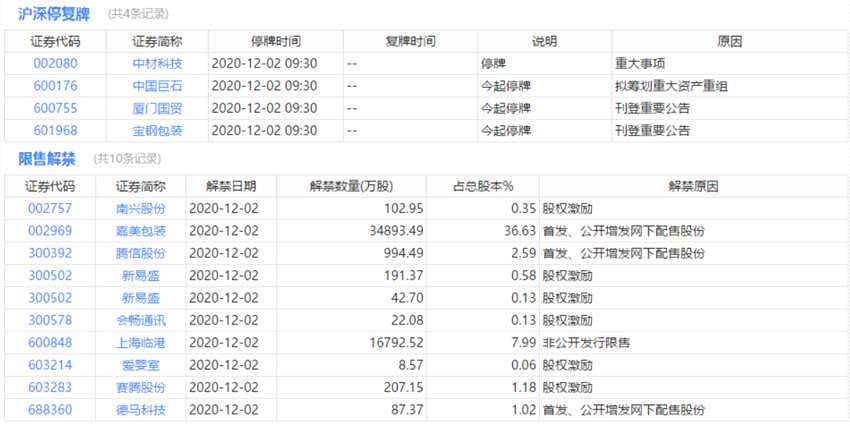 今日上市、申購(gòu)、停復(fù)牌、限售解禁等提醒: