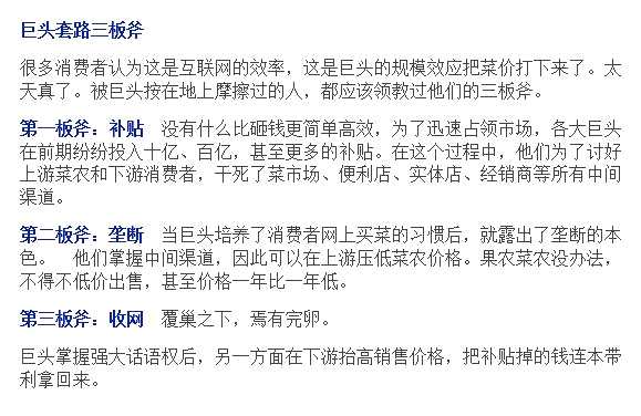 另一個(gè)打得比較火熱得地方和民生相關(guān)。最近老百姓的菜籃子又被資本給盯上了,國內(nèi)各大互聯(lián)網(wǎng)巨頭先后加入戰(zhàn)局,紛紛公布自己的社區(qū)團(tuán)購大計(jì),錢幾億、幾十億的往里面砸,都是大手筆。
