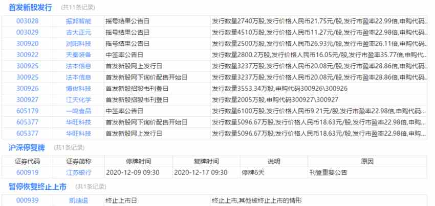 今天申購(gòu)、停復(fù)牌、終止上市、限售解禁等提醒: