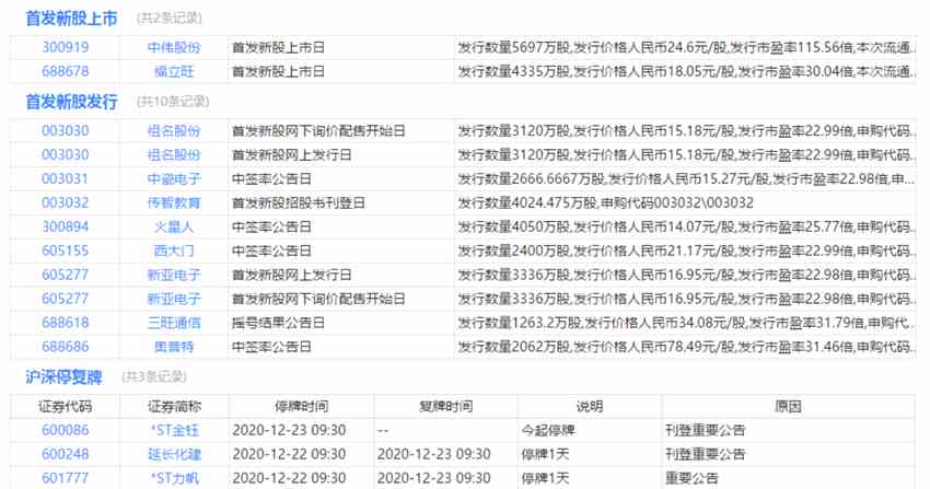 今日上市、申購、停復(fù)牌、限售解禁等提醒:
