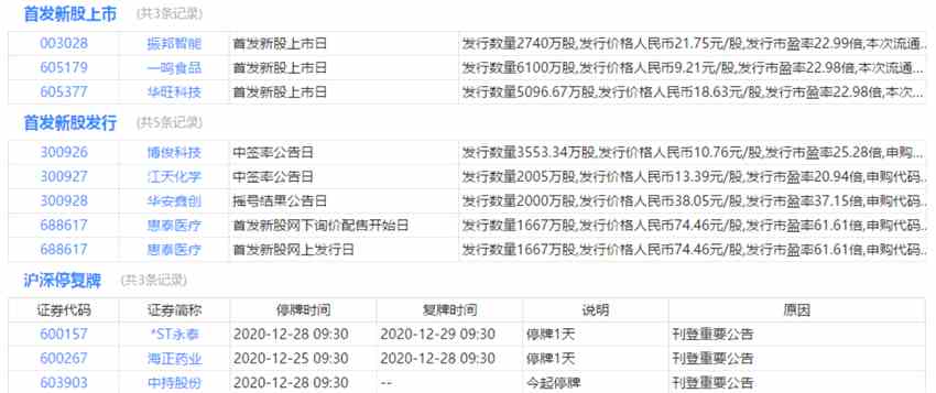 今日上市、申購、停復(fù)牌、限售解禁等提醒: