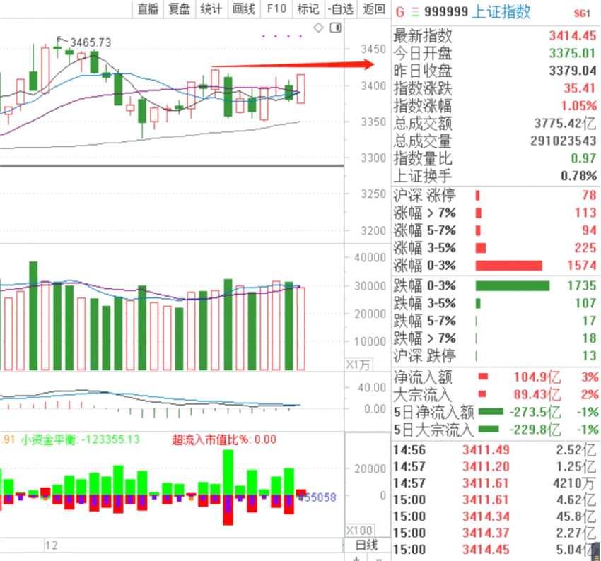 假設(shè)這里突破了壓力位,并且機(jī)智資金流三號(hào)顯示大盤(pán)的主力資金是持續(xù)流入的,這個(gè)時(shí)候我們就不能懷疑行情的真實(shí)性了,而是要大膽進(jìn)行跟進(jìn),上倉(cāng)位去干!