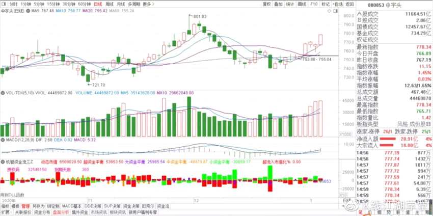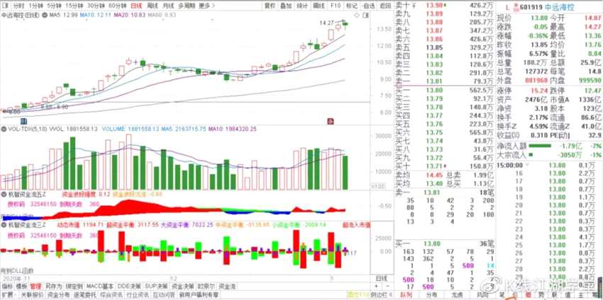 今天還有個(gè)現(xiàn)象,就是拉中字頭的股票來(lái)護(hù)盤,帶人氣,這里也是比較明顯的。