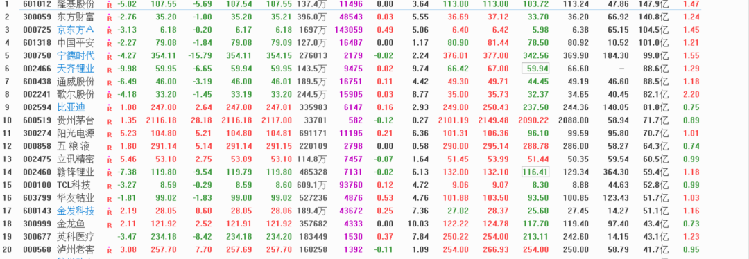 先來看看成交額榜情況,這里成交額前8繼續(xù)大跌,全綠,資金砸盤,獲利資金出逃這些方面都會有影響,不過基本上已經(jīng)限定下跌幅度了。從白酒上就可以看出來來了,五糧液貴州茅臺等經(jīng)過一輪回調(diào)后,今天大跌沒有受到很大的影響,反而逆勢收紅,簡單來說這代表著抱團股的下跌區(qū)間已經(jīng)被鎖死,后續(xù)很難繼續(xù)下跌了。
