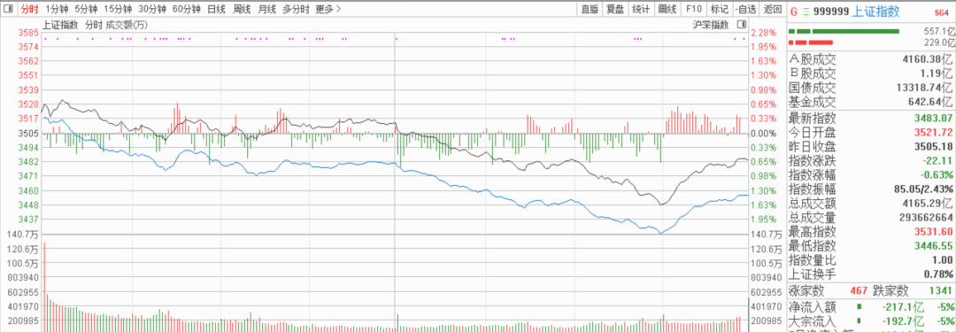 指數(shù)受外圍影響這邊直接搶籌高開了,然后高開低走一整日單邊下跌,直至接近尾盤后二度殺出恐慌盤,資金開始流入抄底。