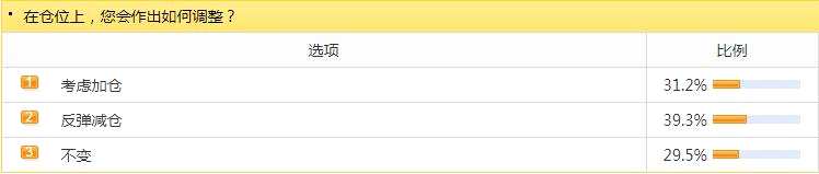 關(guān)于節(jié)后,股民持倉(cāng)會(huì)作出如何調(diào)整的問題,互聯(lián)網(wǎng)的調(diào)查顯示,31.2%的股民堅(jiān)定看好后市,考慮加倉(cāng)待漲;39.3%的股民將逢反彈減倉(cāng);29.5%的股民表示暫時(shí)鎖倉(cāng),以不變應(yīng)萬(wàn)變。