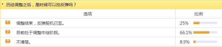 歷經(jīng)近日深度調(diào)整之后,A股是否迎來(lái)反彈契機(jī)?截止今日(2月26日)下午(下同),互聯(lián)網(wǎng)調(diào)查顯示,有25%的股民認(rèn)為指數(shù)調(diào)整結(jié)束,大盤短線超跌,反彈契機(jī)已至;66.1%的股民表示指數(shù)尚未跌到位,目前處于調(diào)整中繼階段;還有8.9%的股民難以作出判斷。