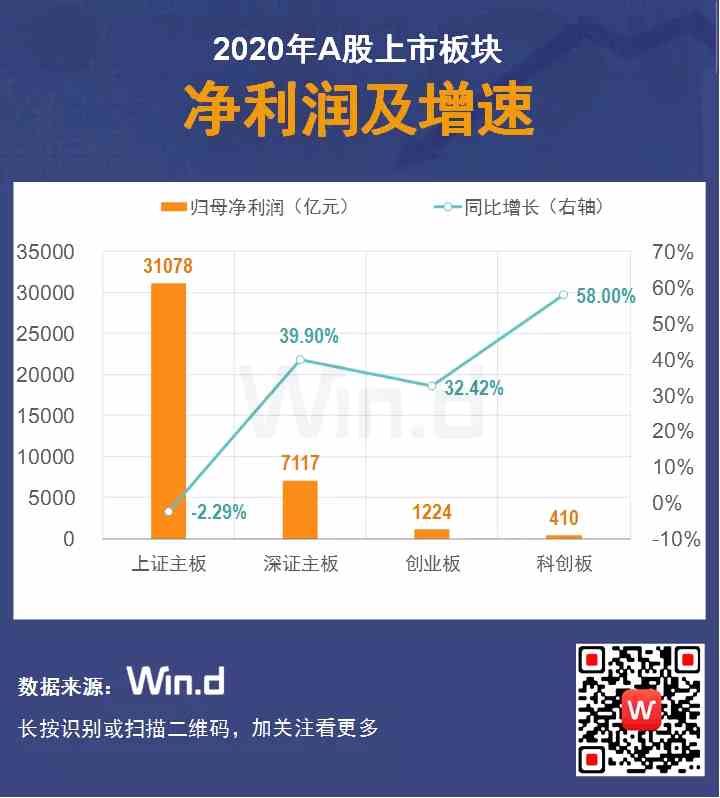 在醫(yī)藥、半導(dǎo)體公司業(yè)績的帶動(dòng)下,2020年科創(chuàng)板歸母凈利合計(jì)同比增速為58%,高于深證主板39.90%的增速及創(chuàng)業(yè)板32.42%的增速。