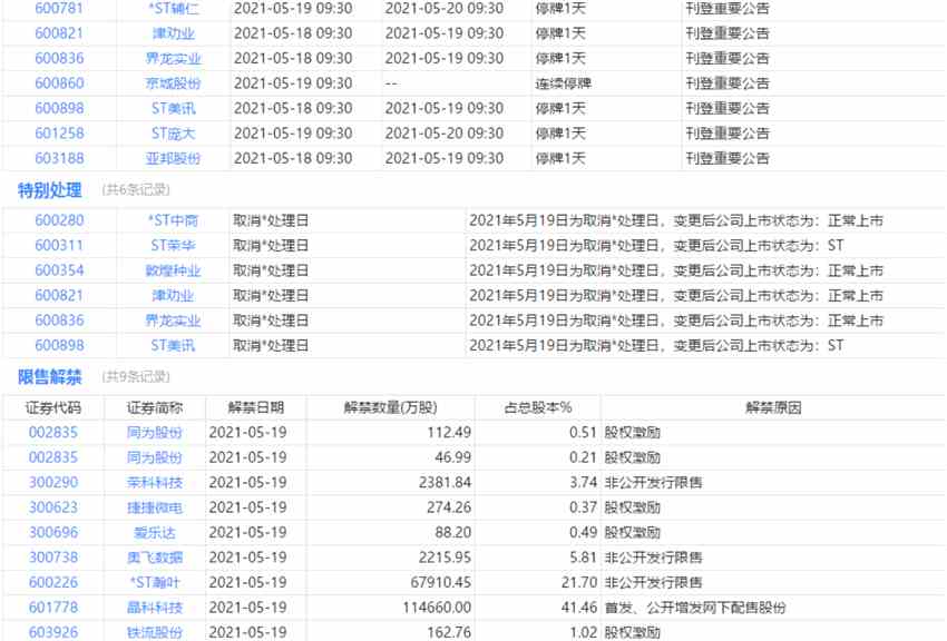 今日上市、申購、停復(fù)牌、特別處理、限售解禁等提醒: