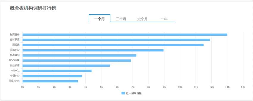 概念板塊上看,近一月融資融券、富時概念和深股通接待機構(gòu)調(diào)研頻次最高,分別達13009、11908和11503次。