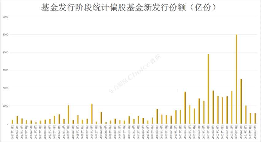 5月偏股基金(股票型+混合型)共發(fā)行930億份,較上月增加59億份。股票型包括普通股票型、被動指數(shù)型、增強指數(shù)型,混合型包括偏股混合型、偏債混合型、平衡混合型、靈活配置型。其中,股票型+偏股混合型共發(fā)行578億份,較上月增加67億元。